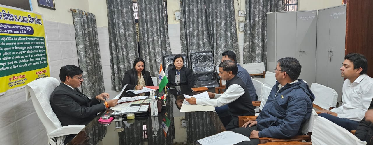 Hapur news:आगामी राष्ट्रीय लोक अदालत 09.12.2023 को सफल बनाने हेतु आज दिनांक 28- 11-2023 को माननीय अध्यक्ष जिला विधिक सेवा प्राधिकरण/जनपद न्यायाधीश, हापुड़ श्री मलखान सिंह की अध्यक्षता में समस्त न्यायिक अधिकारियों के साथ बैठक आहुत की गई। बैठक का संचालन नोडल अधिकारी/अपर जिला जज, हापुड़ डा० रीमा बंसल की देखरेख में अपर जिला जज/सचिव, जिला विधिक सेवा प्राधिकरण, हापुड़ श्रीमति छाया शर्मा द्वारा किया गया। बैठक में माननीय अध्यक्ष जिला विधिक सेवा प्राधिकरण/जनपद न्यायाधीश, हापुड़ द्वारा राष्ट्रीय लोक अदालत में न्यायालयों में लंबित विभिन्न प्रकृति के मामलों जैसे फौजदारी के शमनीय वाद, धारा 138 एन. आई एक्ट चलानी वाद, लघु आपराधिक वाद (Petty Offences) से संबंधित मामलों को अधिक से अधिक संख्या में राष्ट्रीय लोक अदालत में निस्तारण हेतु नियत करने एवं उनमें अधिक से अधिक संख्या में प्रोसेस जारी कराने के संबंध में दिशा-निर्देश जारी किये गये। बैठक में समस्त न्यायिक मजिस्ट्रेटगण उपस्थित रहे।