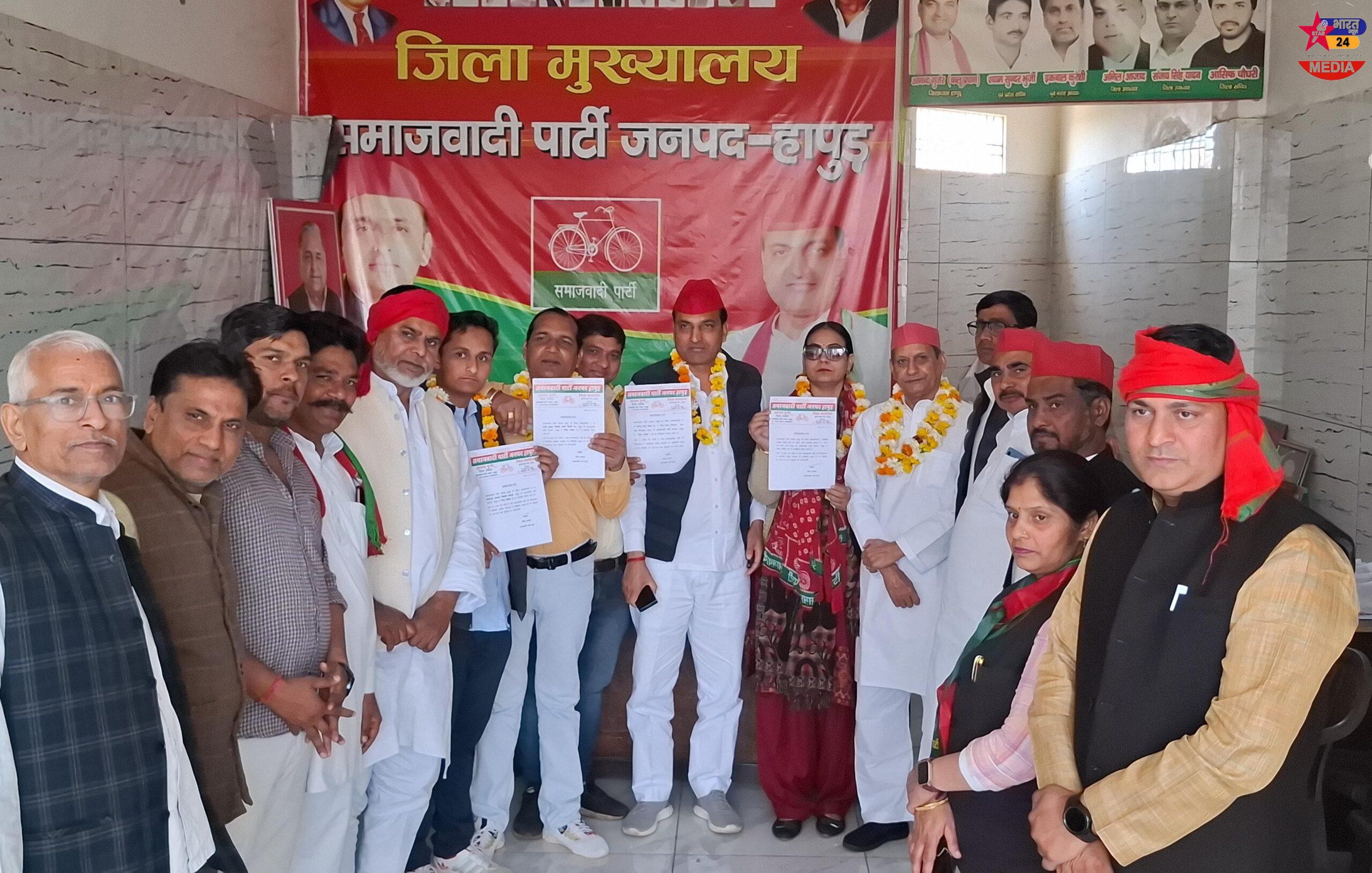 हापुड़ समाजवादी पार्टी कार्यालय जनपद हापुड़ पर मासिक मीटिंग का आयोजन किया गया। मासिक मीटिंग की अध्यक्ष जिला अध्यक्ष समाजवादी पार्टी आनंद गुर्जर जी के द्वारा की गई व संचालन जिला उपाध्यक्ष अख्तर मालिक जी द्वारा किया गया संचालन में सभी पदाधिकारीगण ने अपने-अपने विचार व्यक्त किया और माननीय जिला अध्यक्ष जी ने कहा टैक्स नगर पालिका द्वारा बढ़ाया गया है यह आम जनता के लिए सही नहीं है इसका समाजवादी पार्टी विरोध करती है और आम जनता की आवाज को जिलाधिकारी के माध्यम से राज्यपाल महोदय को ज्ञापन देंगे पी डी ए जन पंचायत का जो अभियान चल रहा है यह निरंतर जारी रहेगा और जनपद के प्रत्येक गांव प्रत्येक सेक्टर तक सुचारू रूप से चलाया जाएगा सभी पदाधिकारीगण को इसमें बढ़-चड कर भाग लेना चाहिए आज जिला संगठन का विस्तार करते हुए चार जिला सचिव नामित किए गए यशोदा यादव जिला सचिव, राकेश कुमार जिला सचिव, धीरज यादव जिला सचिव, मोहम्मद हम्माद जिला सचिव, चारों पदाधिकारीगण को पार्टी कार्यालय पर मनोनयन पत्र दिया गया इस अवसर पर समाजवादी साथी भारी संख्या में उपस्थिति रहे माननीय पूर्व मंत्री भूषण त्यागी राष्ट्रीय सचिव समाजवादी पार्टी,कबाल कुरैशी प्रदेश सचिव समाजवादी पार्टी, संजय गर्ग प्रदेश कार्यकारिणी सदस्य, संजय सिंह यादव जिला उपाध्यक्ष जिला प्रवक्ता, आस मोहम्मद जिला अध्यक्ष अल्पसंख्यक प्रकोष्ठ, यशी यादव जिला सचिव, उमर दराज भाटी, रेशमा यादव, आदेश गोस्वामी, धीरज यादव, मोहम्मद हम्माद, राकेश कुमार, फुरकान, अफसर, संजय गहलोत जिला अध्यक्ष युवजन सभा, पदम सिंह, चांद खान, रोहित जाटव, सोहेल कुरेशी, मोहम्मद मोहसिन सलमानी, अख्तर मालिक, मोहम्मद अयूब सिद्दीकी, अनिल आजाद, मनजीत चौधरी, आदि भारी संख्या में पदाधिकारी उपस्थित रहे।