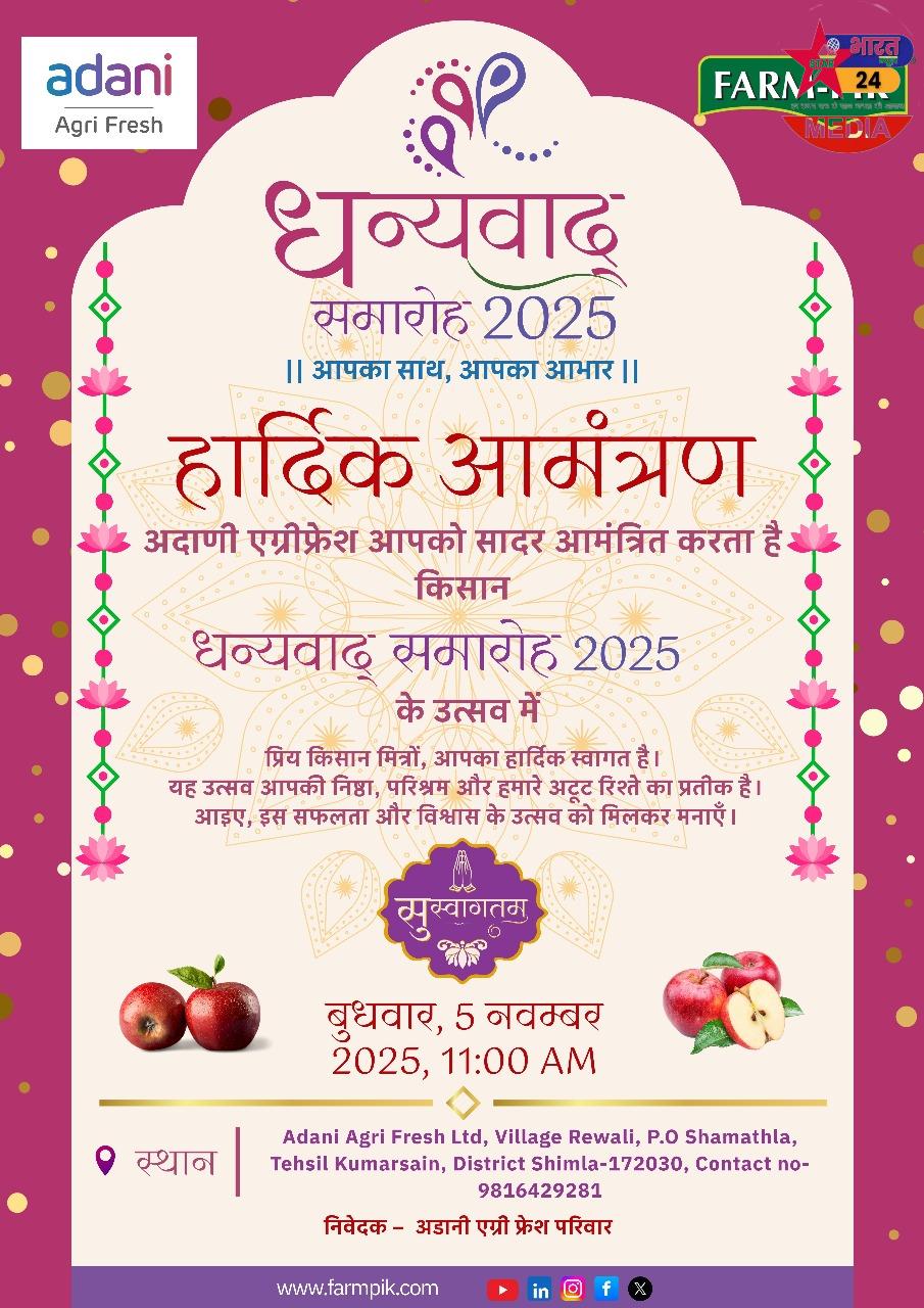अदाणी एग्री फ्रेश लिमिटेड के प्रवक्ता ने कहा* , “हमारा उद्देश्य सिर्फ सेब खरीदना नहीं, बल्कि किसानों के प्रयासों को पहचान देना है। हिमाचल के किसान हमारे साझेदार हैं और यह सम्मान समारोह उनकी मेहनत और समर्पण का उत्सव है। अदाणी एग्री फ्रेश पारदर्शिता और उचित मूल्य सुनिश्चित करने के लिए प्रतिबद्ध है। इस सम्मान समारोह से उन किसानों को पहचान और प्रोत्साहन मिलेगा, जिन्होंने अपनी उत्कृष्ट गुणवत्ता और अधिक उत्पादन से सेब उद्योग में नई मिसाल कायम की है। ऐसे में, हम उम्मीद करते हैं हिमाचल प्रदेश के सेब उत्पादक किसानों के लिए यह साल खास होगा।” अदाणी एग्री फ्रेश लिमिटेड लगातार हिमाचल प्रदेश में सेब व्यापार को पारदर्शिता, गति और बेहतर दामों से जोड़ने की दिशा में कार्यरत है। पारंपरिक मंडियों में जहाँ अच्छी क्वालिटी के सेबों के लिए किसानों को 55 रुपए प्रति किलोग्राम का दाम मिलता है, वहीं अदाणी एग्री फ्रेश लिमिटेडने किसानों को *90 रुपए से अधिक प्रति किलोग्राम मूल्य प्रदान किया है।कंपनी की डिजिटल मंडी पहल ने सेब व्यापार के तरीके को पूरी तरह बदल दिया है। इस प्लेटफॉर्म के जरिए किसान बिना किसी बिचौलिए के सीधे खरीदारों से जुड़ सकते हैं। छँटाई, वजन और गुणवत्ता निर्धारण की प्रक्रिया पूरी तरह मशीनों से की जाती है, जिससे पारदर्शिता और निष्पक्षता बनी रहती है। डिजिटल मंडी के माध्यम से किसानों को सात दिनों के भीतर डिजिटल भुगतान भी सुनिश्चित किया जा रहा है।यह कहना गलत नहीं होगा कि अदाणी एग्री फ्रेश लिमिटेड का यह आयोजन किसानों की मेहनत को सम्मान देने के साथ-साथ हिमाचल की सेब अर्थव्यवस्था में विश्वास, पारदर्शिता और सशक्तिकरण का प्रतीक बनने जा रहा है। यह पहल न सिर्फ किसानों को लाभान्वित करेगी, बल्कि कृषि क्षेत्र में नई संभावनाओं और सम्मान की संस्कृति को भी मजबूत बनाएगी।