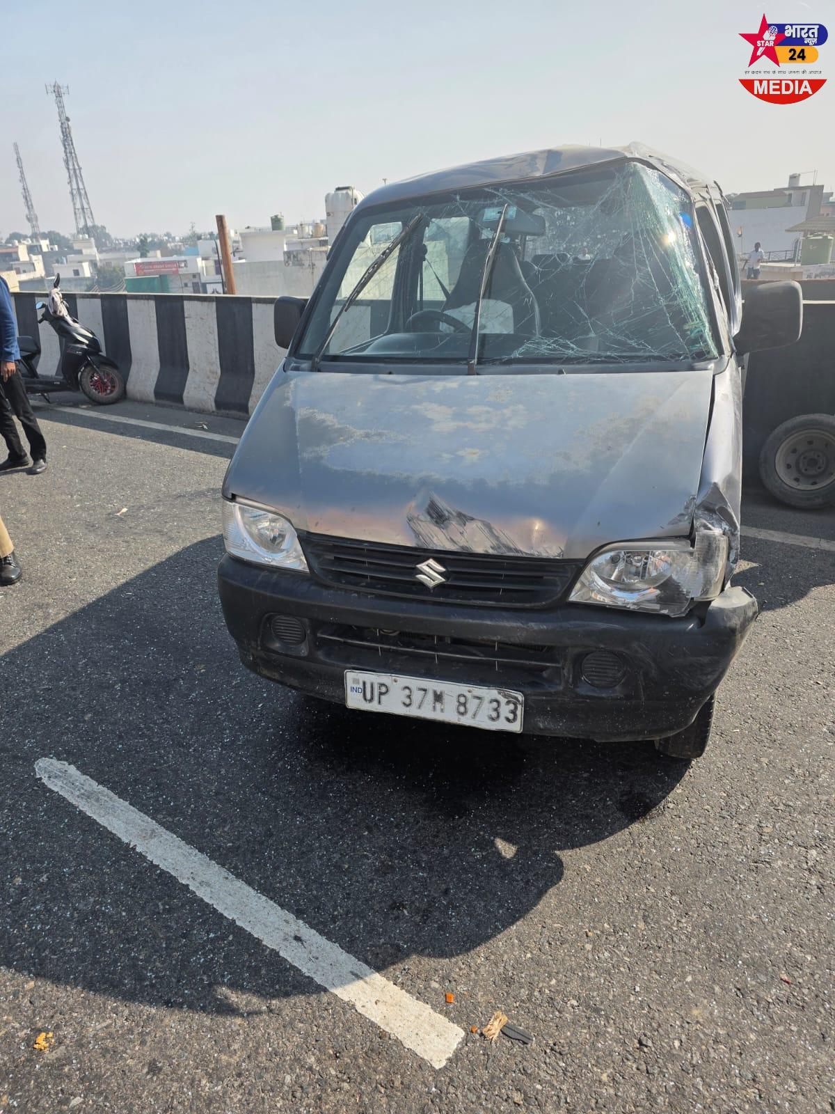 दिल्ली-लखनऊ राष्ट्रीय राजमार्ग पर भीषण हादसा: ईको कार और ट्रक की टक्कर, चार लोग गंभीर रूप से घायल।