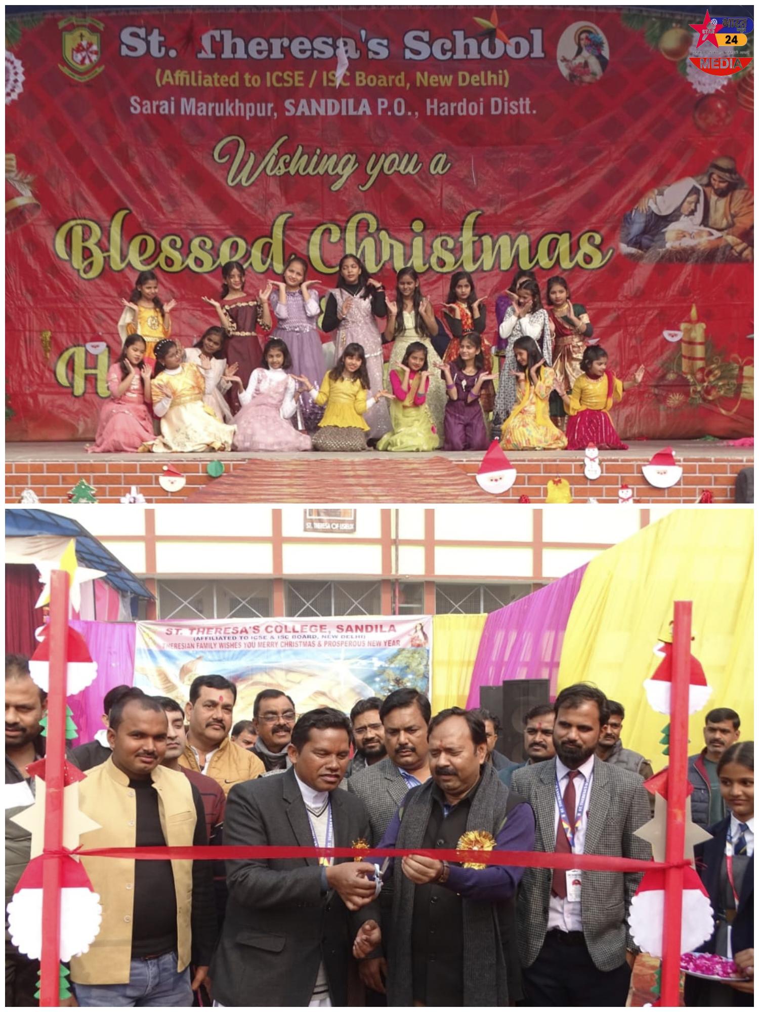 हरदोई संडीला तहसील क्षेत्र के अंतर्गत क्रिसमस के अवसर पर सेंट थेरेसा स्कूल संडीला में क्रिसमस मेला फिएस्टा-2025 का आयोजन किया गया। इस मेले का शुभारंभ मिश्रिख के सांसद अशोक रावत ने किया। कार्यक्रम का आरंभ दीप प्रज्वलन से हुआ।मुख्य अतिथि सांसद रावत के साथ विद्यालय के प्रधानाचार्य फादर जॉन पॉल बारा, हेडमिस्ट्रेस सिस्टर निकिता, स्कूल कोऑर्डिनेटर मनवेन्द्र सिंह चौहान और हेड बॉय आशीष वर्मा ने संयुक्त रूप से दीप प्रज्वलित किया।