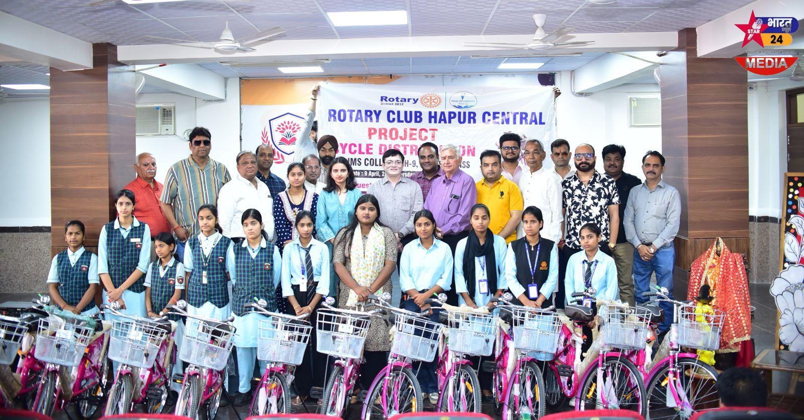 हापुड़ में ‘बेटी बचाओ, बेटी पढ़ाओ’ को मिला मजबूती का साथ, रोटरी क्लब हापुड़ सेंट्रल ने छात्राओं को साइकिलें वितरित कर बढ़ाया हौसला।